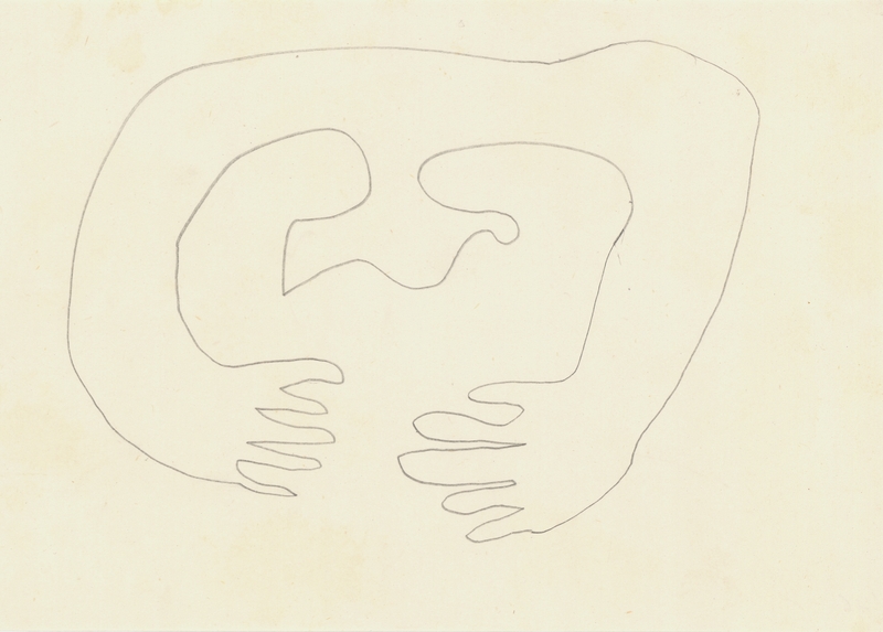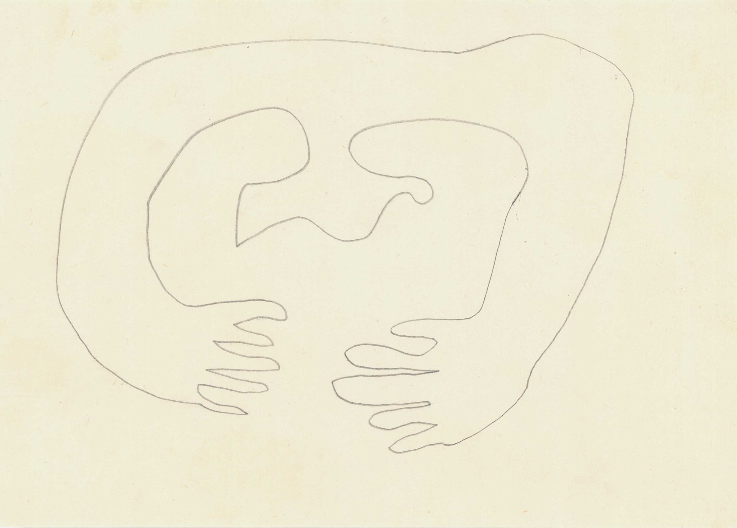 en A design by Alex Mylona, intended for the creation of a pantatiff. The composition, which depicts only the outline of two hands without any other details, testifies to her love for the applied arts, as well as her interest in the composition of the arts, wanting to create functional and decorative objects through the prism of the visual arts.