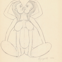en Alex Mylona was born in Athens in 1923. From a young age, she showed an interest in painting and received her first lessons. She studied sculpture at the Athens School of Fine Arts (1945-1950) under the guidance of her teacher, M. Tombros.<br />The early period of her work mainly consisted of representational sculptures focusing on the human form. Her move to Paris in the 1960s and her encounters with significant artists such as H. Arp, A. Giacometti, and O. Zadkine were transformative and shaped her artistic oeuvre. From her early anthropocentric compositions in the 1950s, she progressed to create abstract sculptures in wrought iron characterized by frontality, strict immobility, speed, sharp endings, and a play of lines that included void form and vertical surfaces. Through the rotations, folds, curves, movements, and tensions of pliable metal elements in architectural proposals, she arrived at the deeply worked simplicity of sculptural form and the purity of geometric marble surfaces, combining circles, semicircles, squares, and rectangles. In addition to her sculptural work, Mylona created a plethora of works on paper, engaged in painting, and drew the sets and costumes for the Greek Dance Theater of Rallou Manou.<br />She presented her work in numerous solo exhibitions in Greece and abroad, while her participation in international group exhibitions was significant. In 1960, she represented Greece at the 30th Venice Biennale, in 1961 at the São Paulo Biennial, and in 1967 at the International Exhibition of Montreal, as well as at the Biennials of Alexandria, Buenos Aires, and others.<br />In the mid-1990s, she permanently settled in Greece and worked between Athens and Syros. In 2004, the Alex Mylona Museum was founded, where she donated her work. In 2007, the building, along with her work and archive, was transferred to the Macedonian Museum of Contemporary Art (MMCA). In 2018, with the establishment of MOMus - Metropolitan Organization of Visual Arts Museums of Thessaloniki, MMCA and MOMA became part of the new organization. She passed away in Athens in 2016.