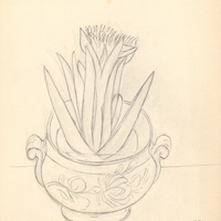 en Still life study, pot with cactus.
