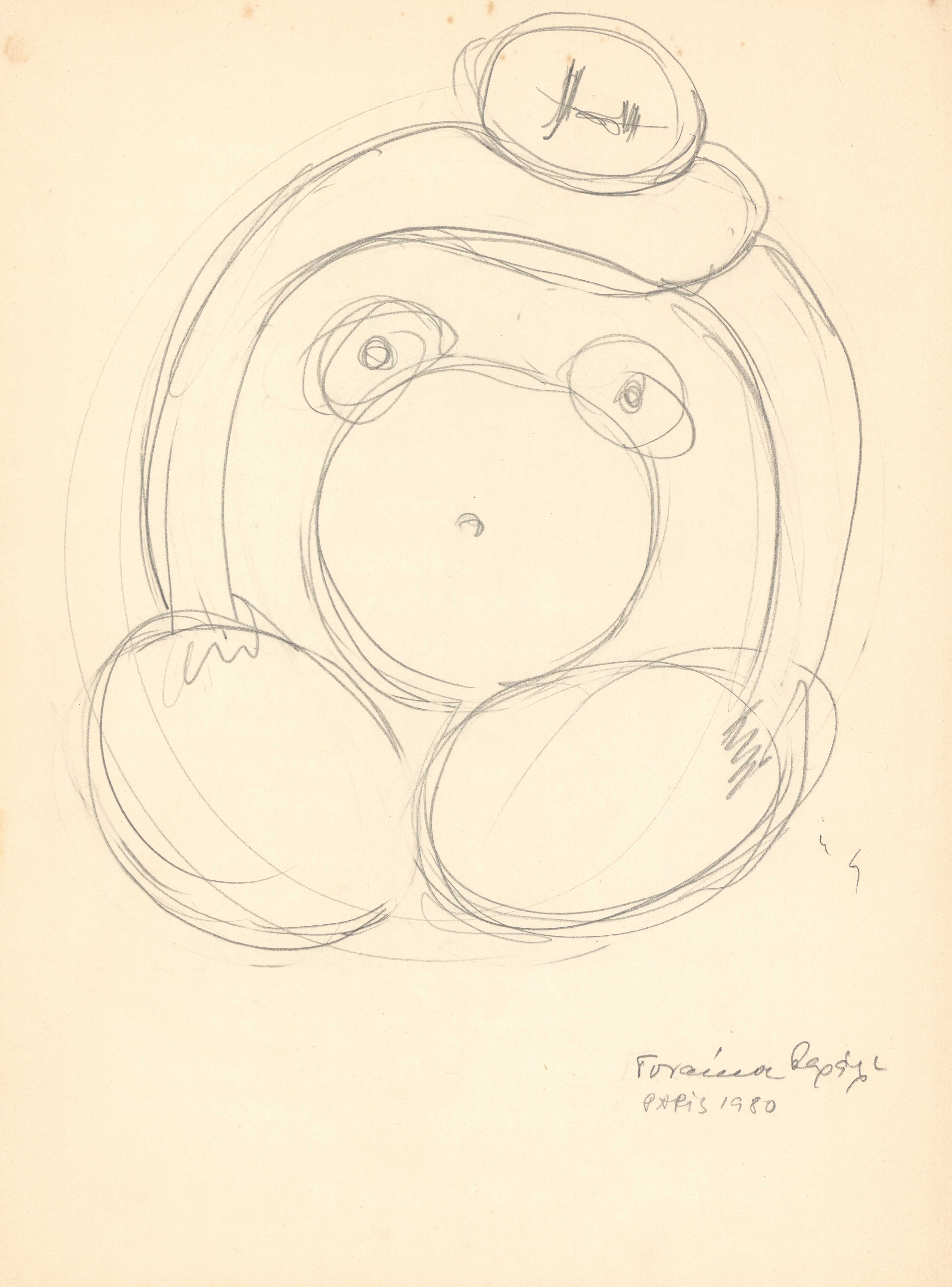 The early period of her work mainly consisted of representational sculptures focusing on the human form. Her move to Paris in the 1960s and her encounters with significant artists such as H. Arp, A. Giacometti, and O. Zadkine were transformative and shaped her artistic oeuvre. From her early anthropocentric compositions in the 1950s, she progressed to create abstract sculptures in wrought iron characterized by frontality, strict immobility, speed, sharp endings, and a play of lines that included void form and vertical surfaces. Through the rotations, folds, curves, movements, and tensions of pliable metal elements in architectural proposals, she arrived at the deeply worked simplicity of sculptural form and the purity of geometric marble surfaces, combining circles, semicircles, squares, and rectangles. In addition to her sculptural work, Mylona created a plethora of works on paper, engaged in painting, and drew the sets and costumes for the Greek Dance Theater of Rallou Manou.