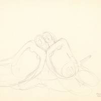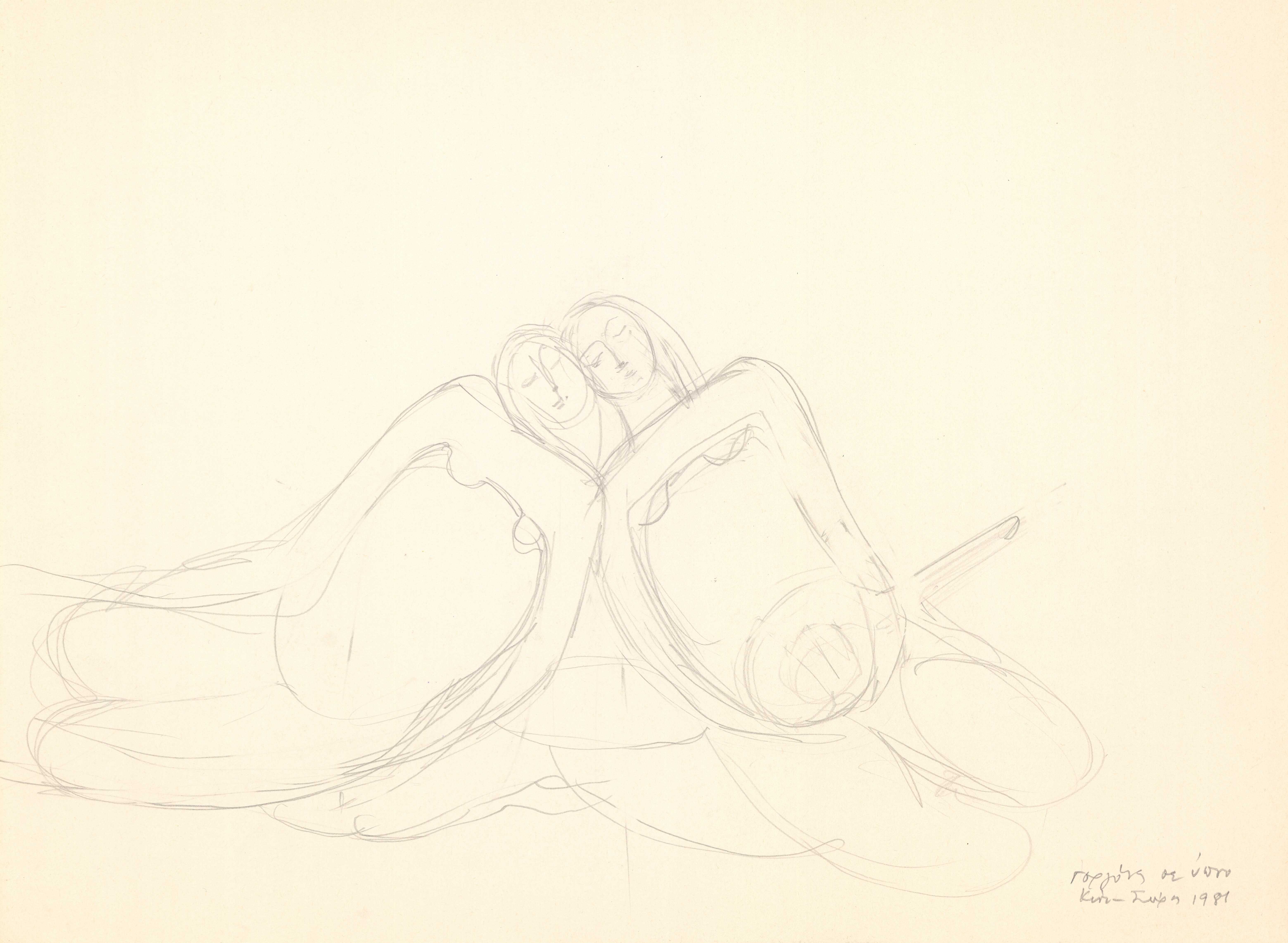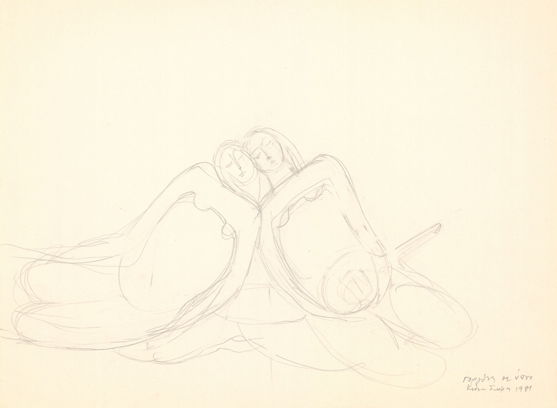 The early period of her work mainly consisted of representational sculptures focusing on the human form. Her move to Paris in the 1960s and her encounters with significant artists such as H. Arp, A. Giacometti, and O. Zadkine were transformative and shaped her artistic oeuvre. From her early anthropocentric compositions in the 1950s, she progressed to create abstract sculptures in wrought iron characterized by frontality, strict immobility, speed, sharp endings, and a play of lines that included void form and vertical surfaces. Through the rotations, folds, curves, movements, and tensions of pliable metal elements in architectural proposals, she arrived at the deeply worked simplicity of sculptural form and the purity of geometric marble surfaces, combining circles, semicircles, squares, and rectangles. In addition to her sculptural work, Mylona created a plethora of works on paper, engaged in painting, and drew the sets and costumes for the Greek Dance Theater of Rallou Manou.