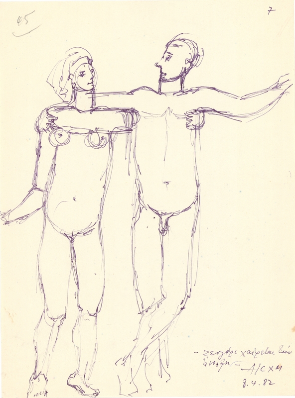 The early period of her work mainly consisted of representational sculptures focusing on the human form. Her move to Paris in the 1960s and her encounters with significant artists such as H. Arp, A. Giacometti, and O. Zadkine were transformative and shaped her artistic oeuvre. From her early anthropocentric compositions in the 1950s, she progressed to create abstract sculptures in wrought iron characterized by frontality, strict immobility, speed, sharp endings, and a play of lines that included void form and vertical surfaces. Through the rotations, folds, curves, movements, and tensions of pliable metal elements in architectural proposals, she arrived at the deeply worked simplicity of sculptural form and the purity of geometric marble surfaces, combining circles, semicircles, squares, and rectangles. In addition to her sculptural work, Mylona created a plethora of works on paper, engaged in painting, and drew the sets and costumes for the Greek Dance Theater of Rallou Manou.