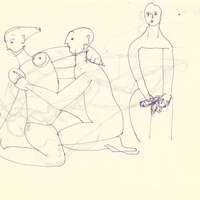 The early period of her work mainly consisted of representational sculptures focusing on the human form. Her move to Paris in the 1960s and her encounters with significant artists such as H. Arp, A. Giacometti, and O. Zadkine were transformative and shaped her artistic oeuvre. From her early anthropocentric compositions in the 1950s, she progressed to create abstract sculptures in wrought iron characterized by frontality, strict immobility, speed, sharp endings, and a play of lines that included void form and vertical surfaces. Through the rotations, folds, curves, movements, and tensions of pliable metal elements in architectural proposals, she arrived at the deeply worked simplicity of sculptural form and the purity of geometric marble surfaces, combining circles, semicircles, squares, and rectangles. In addition to her sculptural work, Mylona created a plethora of works on paper, engaged in painting, and drew the sets and costumes for the Greek Dance Theater of Rallou Manou.