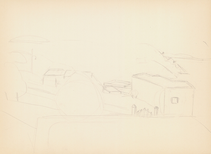 en Study of houses in the countryside.