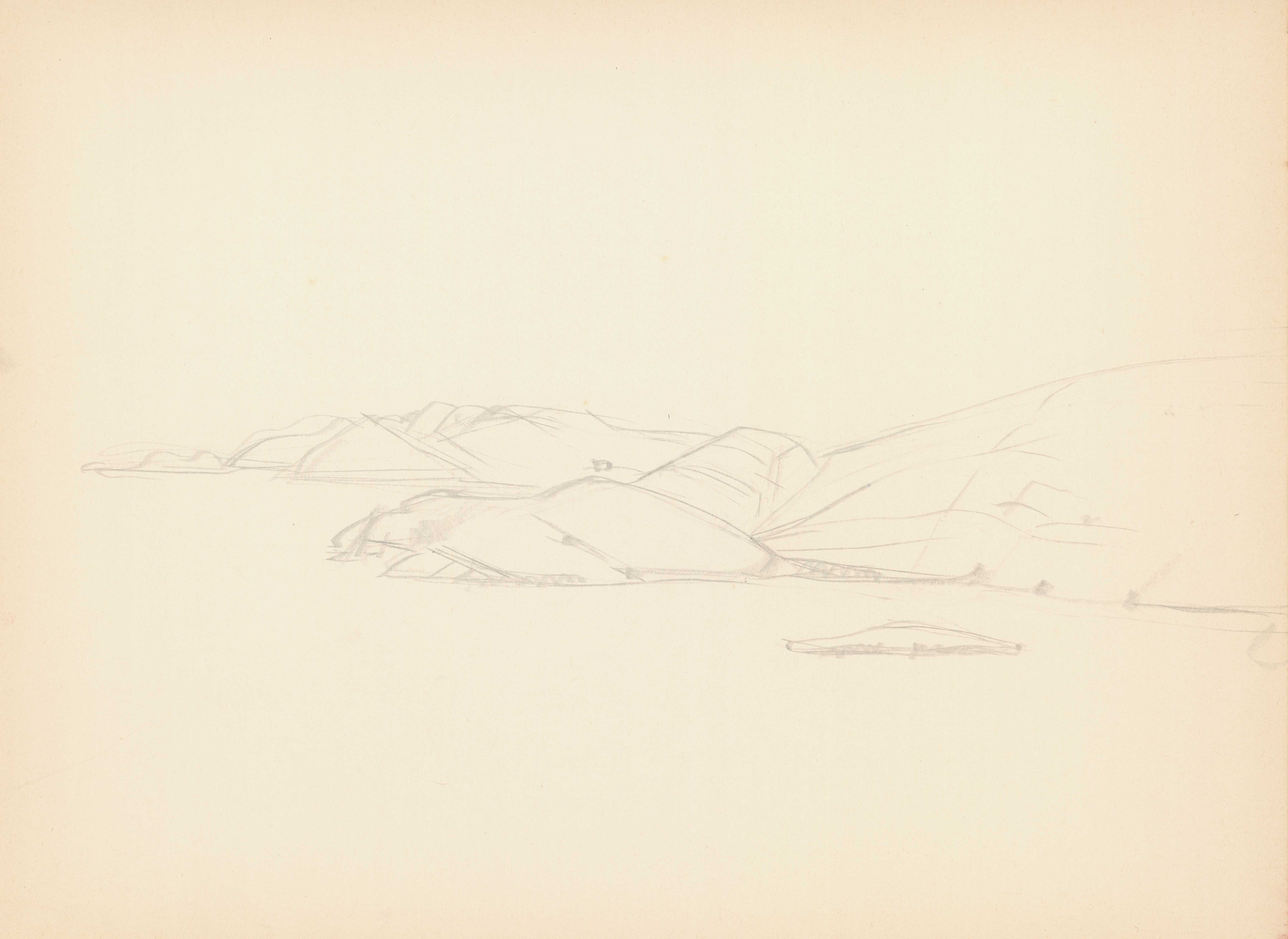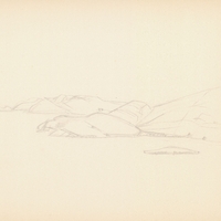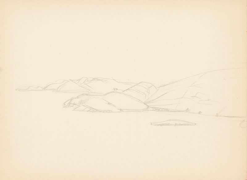 en Study of a coastal landscape, where faint rocky masses are depicted.