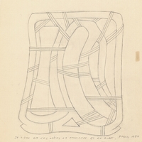 The early period of her work mainly consisted of representational sculptures focusing on the human form. Her move to Paris in the 1960s and her encounters with significant artists such as H. Arp, A. Giacometti, and O. Zadkine were transformative and shaped her artistic oeuvre. From her early anthropocentric compositions in the 1950s, she progressed to create abstract sculptures in wrought iron characterized by frontality, strict immobility, speed, sharp endings, and a play of lines that included void form and vertical surfaces. Through the rotations, folds, curves, movements, and tensions of pliable metal elements in architectural proposals, she arrived at the deeply worked simplicity of sculptural form and the purity of geometric marble surfaces, combining circles, semicircles, squares, and rectangles. In addition to her sculptural work, Mylona created a plethora of works on paper, engaged in painting, and drew the sets and costumes for the Greek Dance Theater of Rallou Manou.