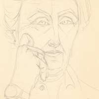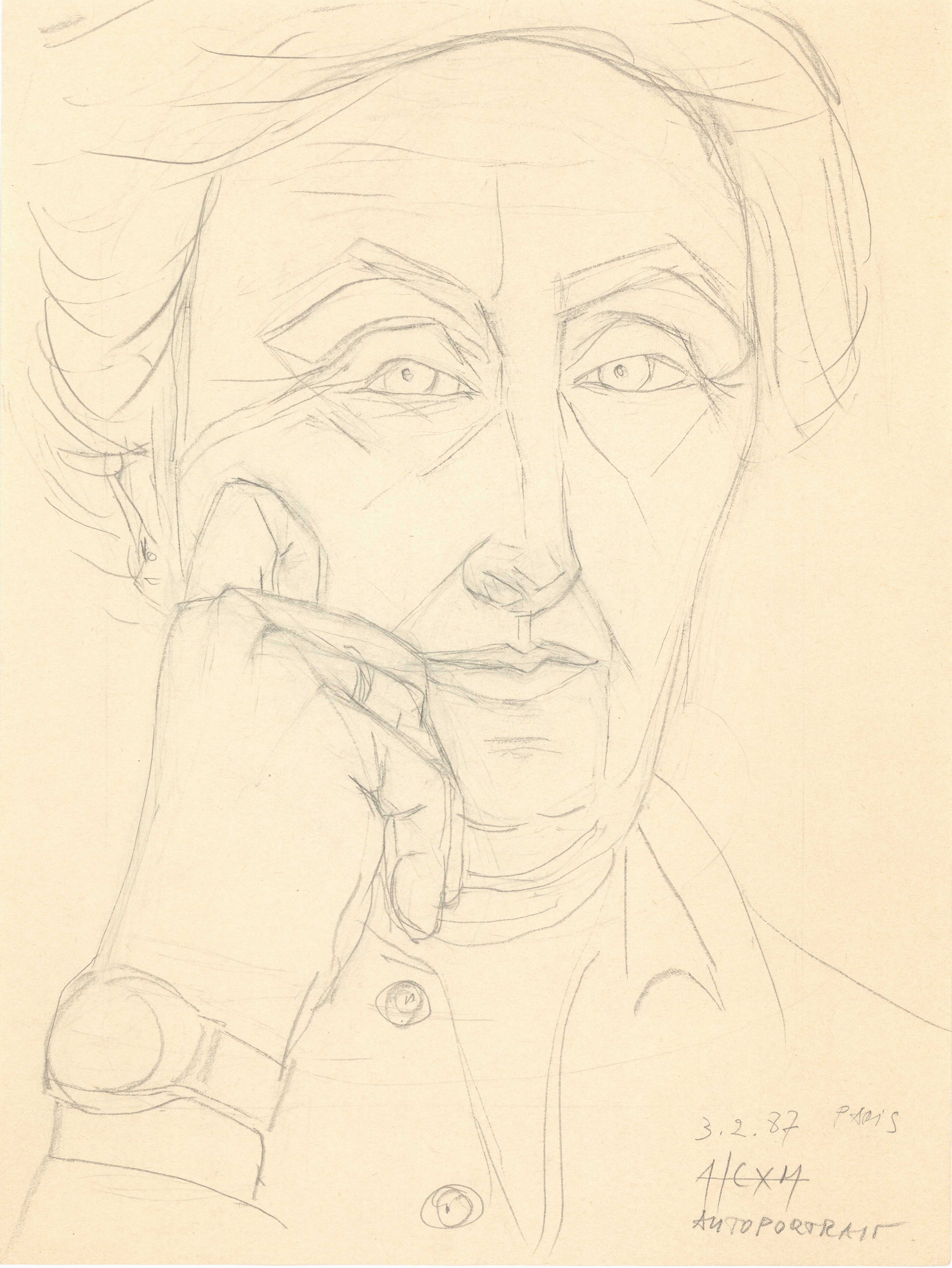 en In 1998, the artist captured her self-portrait at a mature age. In a completely naturalistic composition, she depicts her physical characteristics without embellishing or concealing any elements of her image.