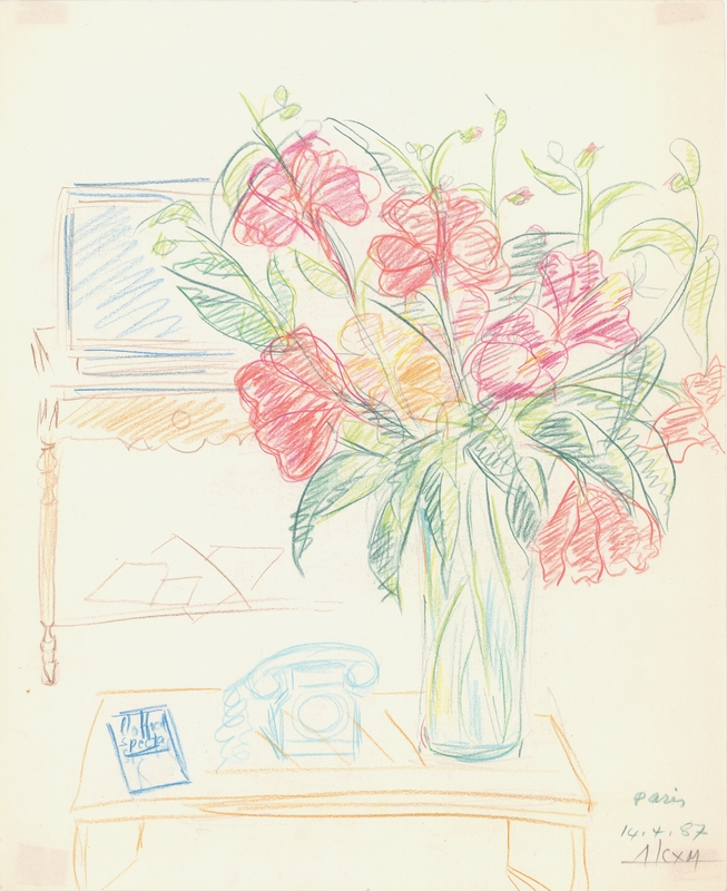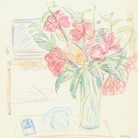 el Μελέτη νεκρής φύσης, όπου απεικονίζεται βάζο με λουλούδια σε εσωτερικό.