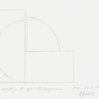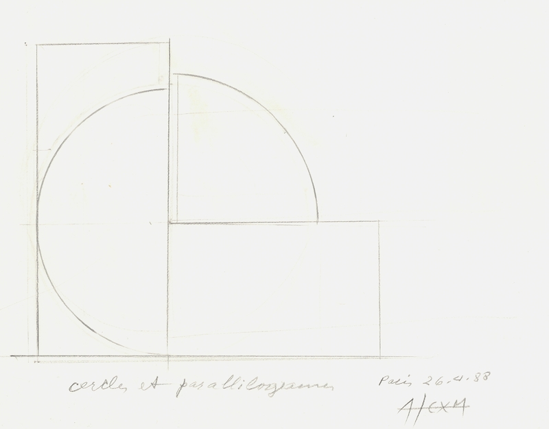el Τετράδιο με 7 σκίτσα. Γεωμετρική σύνθεση με τετράγωνη ανάπτυξη, όπου δεσπόζουν οι διαγώνιες γραμμές, που ορίζουν τον εσωτερικό χώρο του γεωμετρικού σχήματος.