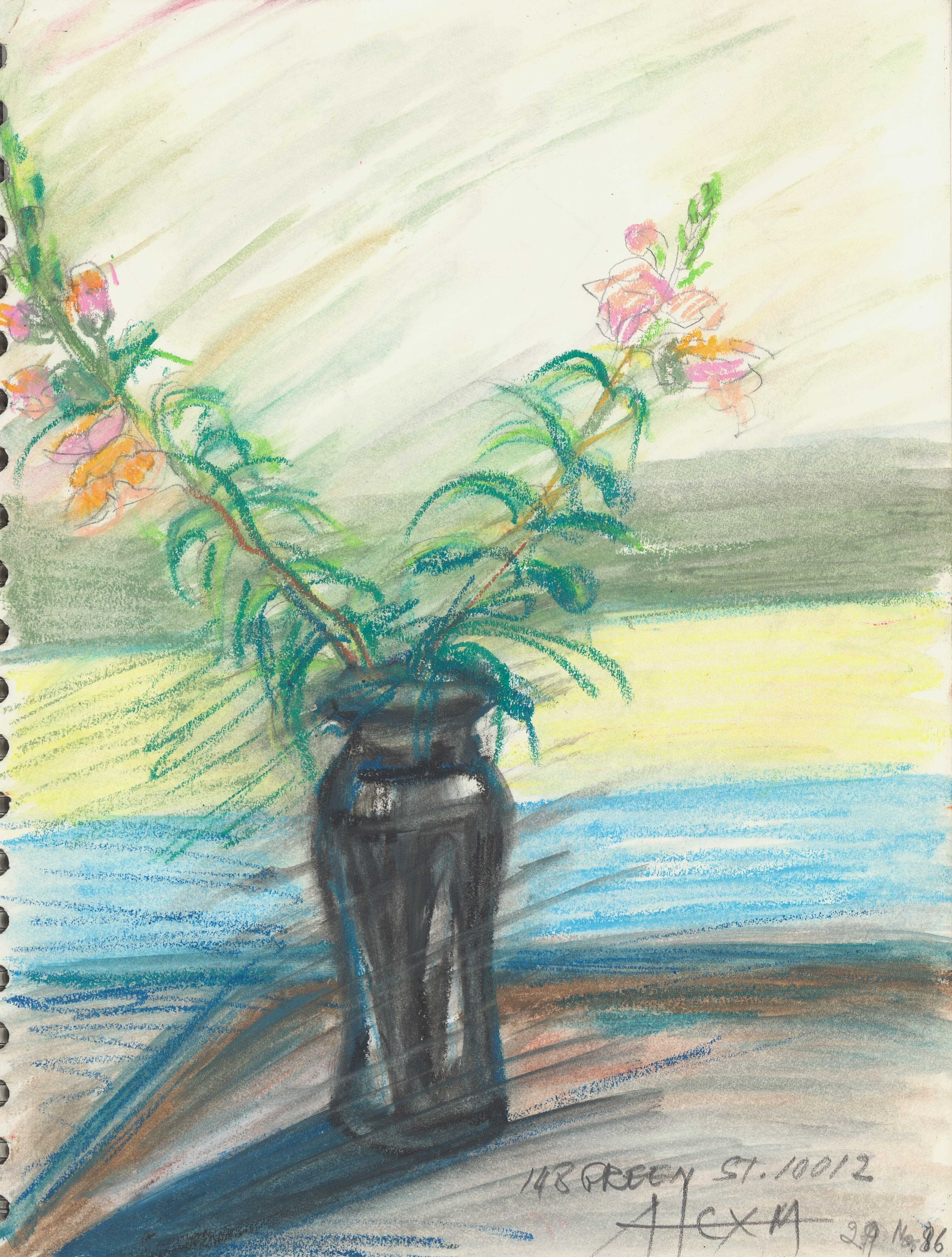 en Still life study with a vase of flowers, created by the artist in New York.