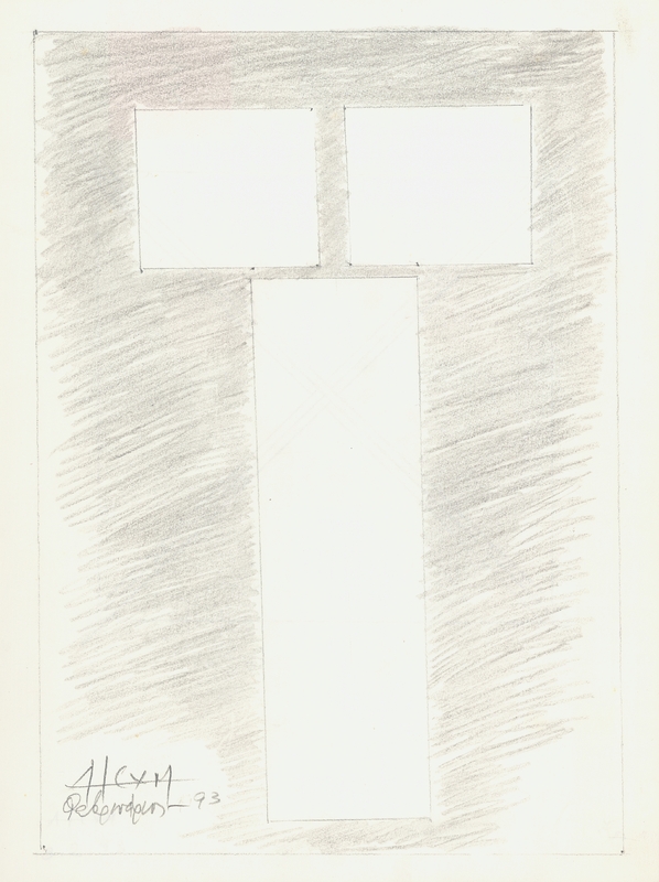 en Geometric composition in gray, study for the series of sculptures "Angels" and "Kouroi." As the artist herself notes, the design was executed in marble in 1993 and is titled "Kouros I." In the early 1990s, Mylona created the series of works "Angels" and "Kouroi" in transparent marble, which are characterized by minimalist and austere lines and absolute geometry. Later, in 1997, she created the works "Kouros" and "Kori," returning to representationalism, stylized forms, and archaic models.