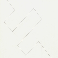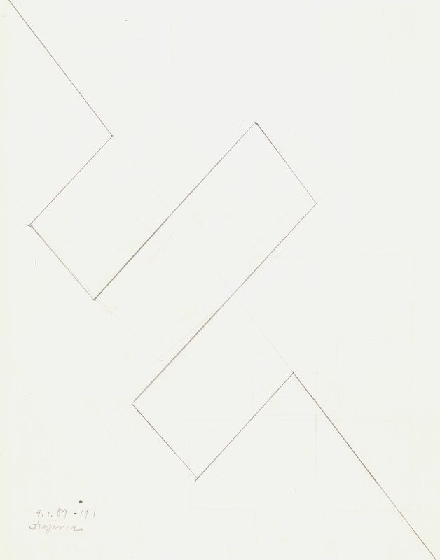 en An abstract composition dominated by diagonal and horizontal lines, which divide the pictorial surface in the middle, automatically creating two.