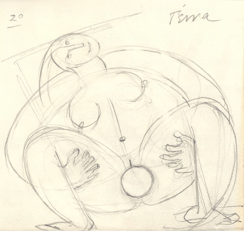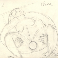 The early period of her work mainly consisted of representational sculptures focusing on the human form. Her move to Paris in the 1960s and her encounters with significant artists such as H. Arp, A. Giacometti, and O. Zadkine were transformative and shaped her artistic oeuvre. From her early anthropocentric compositions in the 1950s, she progressed to create abstract sculptures in wrought iron characterized by frontality, strict immobility, speed, sharp endings, and a play of lines that included void form and vertical surfaces. Through the rotations, folds, curves, movements, and tensions of pliable metal elements in architectural proposals, she arrived at the deeply worked simplicity of sculptural form and the purity of geometric marble surfaces, combining circles, semicircles, squares, and rectangles. In addition to her sculptural work, Mylona created a plethora of works on paper, engaged in painting, and drew the sets and costumes for the Greek Dance Theater of Rallou Manou.