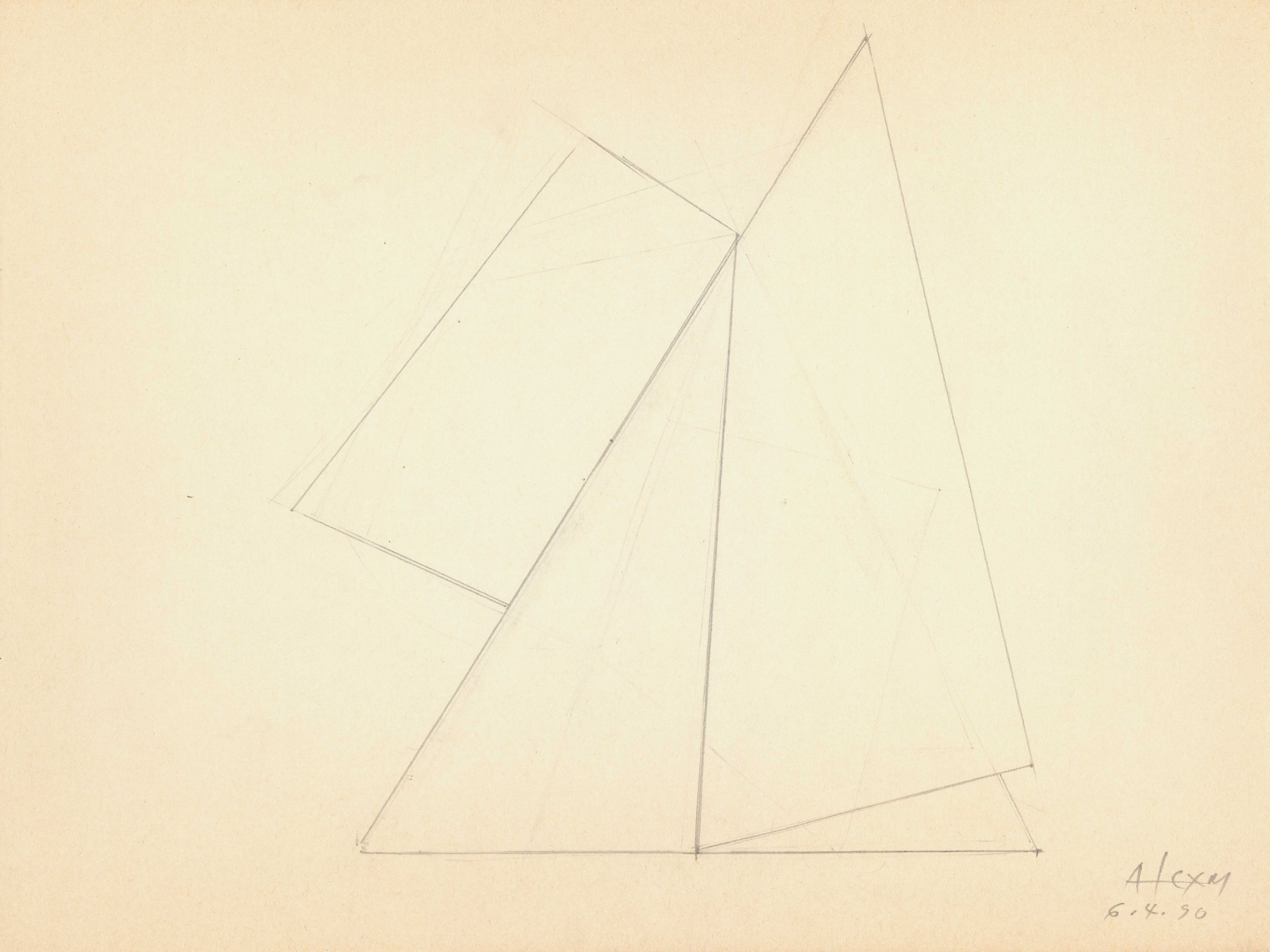 The early period of her work mainly consisted of representational sculptures focusing on the human form. Her move to Paris in the 1960s and her encounters with significant artists such as H. Arp, A. Giacometti, and O. Zadkine were transformative and shaped her artistic oeuvre. From her early anthropocentric compositions in the 1950s, she progressed to create abstract sculptures in wrought iron characterized by frontality, strict immobility, speed, sharp endings, and a play of lines that included void form and vertical surfaces. Through the rotations, folds, curves, movements, and tensions of pliable metal elements in architectural proposals, she arrived at the deeply worked simplicity of sculptural form and the purity of geometric marble surfaces, combining circles, semicircles, squares, and rectangles. In addition to her sculptural work, Mylona created a plethora of works on paper, engaged in painting, and drew the sets and costumes for the Greek Dance Theater of Rallou Manou.