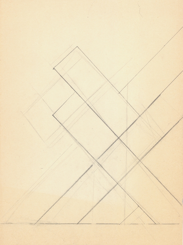 en Abstract geometric composition, characterized by the arrangement of diagonal rectangular parallelograms. Probably a study for a sculpture.