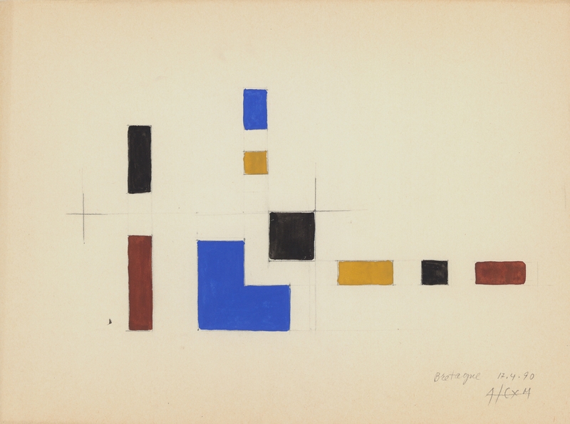 el Αφηρημένη γεωμετρική σύνθεση, η οποία χαρακτηρίζεται από χρωματική λιτότητα και τη διάταξη τετράγωνων και ορθογώνιων παραλληλογράμμων.