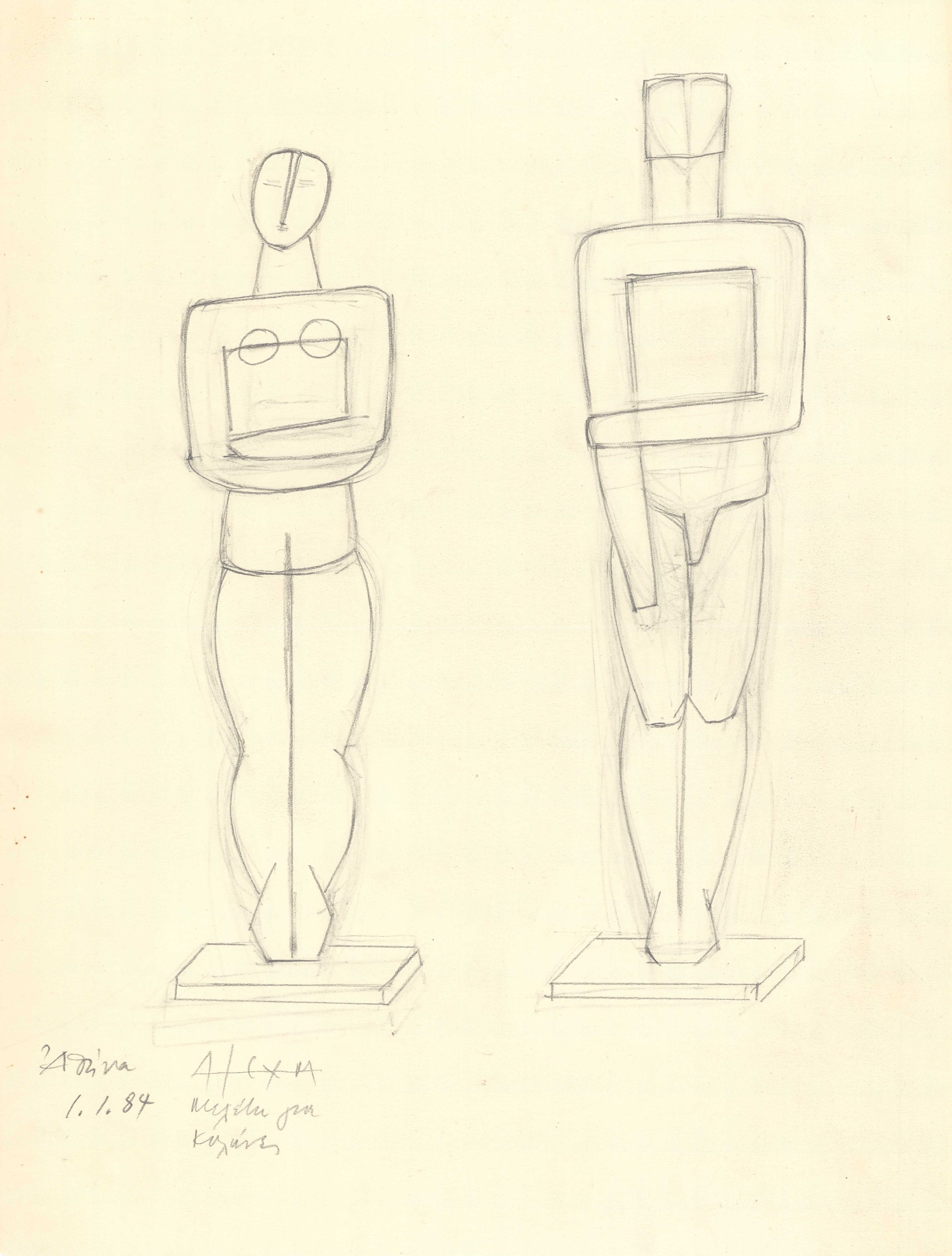 The early period of her work mainly consisted of representational sculptures focusing on the human form. Her move to Paris in the 1960s and her encounters with significant artists such as H. Arp, A. Giacometti, and O. Zadkine were transformative and shaped her artistic oeuvre. From her early anthropocentric compositions in the 1950s, she progressed to create abstract sculptures in wrought iron characterized by frontality, strict immobility, speed, sharp endings, and a play of lines that included void form and vertical surfaces. Through the rotations, folds, curves, movements, and tensions of pliable metal elements in architectural proposals, she arrived at the deeply worked simplicity of sculptural form and the purity of geometric marble surfaces, combining circles, semicircles, squares, and rectangles. In addition to her sculptural work, Mylona created a plethora of works on paper, engaged in painting, and drew the sets and costumes for the Greek Dance Theater of Rallou Manou.