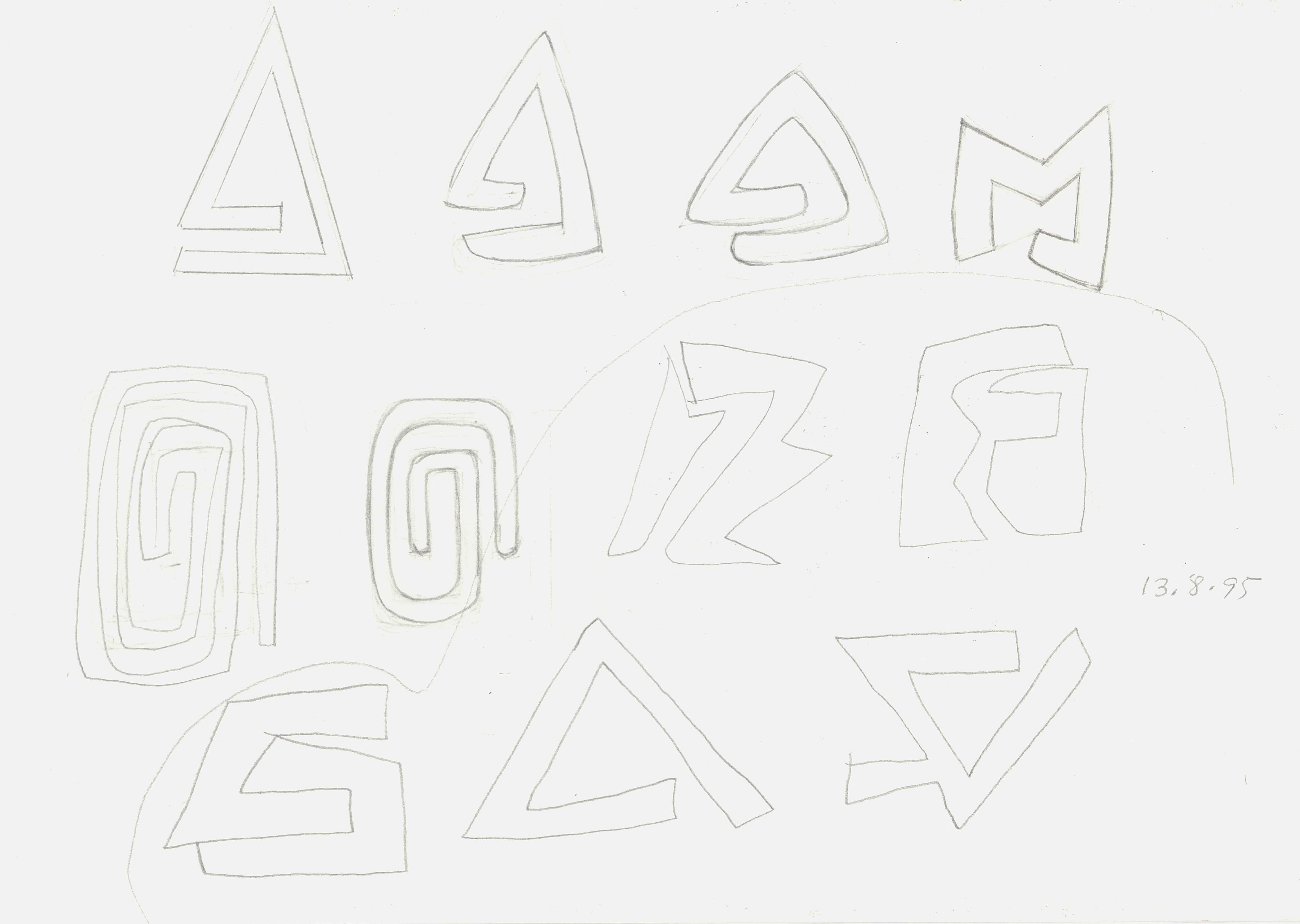 el Μελέτη για Κοσμήματα - 11 Σχέδια, όπου κυριαρχούν οι σπείρες, οι γωνιώδεις απολήξεις και οι γεωμετρικές συνθέσεις.