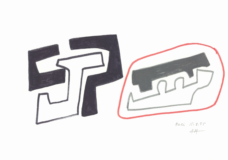 The early period of her work mainly consisted of representational sculptures focusing on the human form. Her move to Paris in the 1960s and her encounters with significant artists such as H. Arp, A. Giacometti, and O. Zadkine were transformative and shaped her artistic oeuvre. From her early anthropocentric compositions in the 1950s, she progressed to create abstract sculptures in wrought iron characterized by frontality, strict immobility, speed, sharp endings, and a play of lines that included void form and vertical surfaces. Through the rotations, folds, curves, movements, and tensions of pliable metal elements in architectural proposals, she arrived at the deeply worked simplicity of sculptural form and the purity of geometric marble surfaces, combining circles, semicircles, squares, and rectangles. In addition to her sculptural work, Mylona created a plethora of works on paper, engaged in painting, and drew the sets and costumes for the Greek Dance Theater of Rallou Manou.