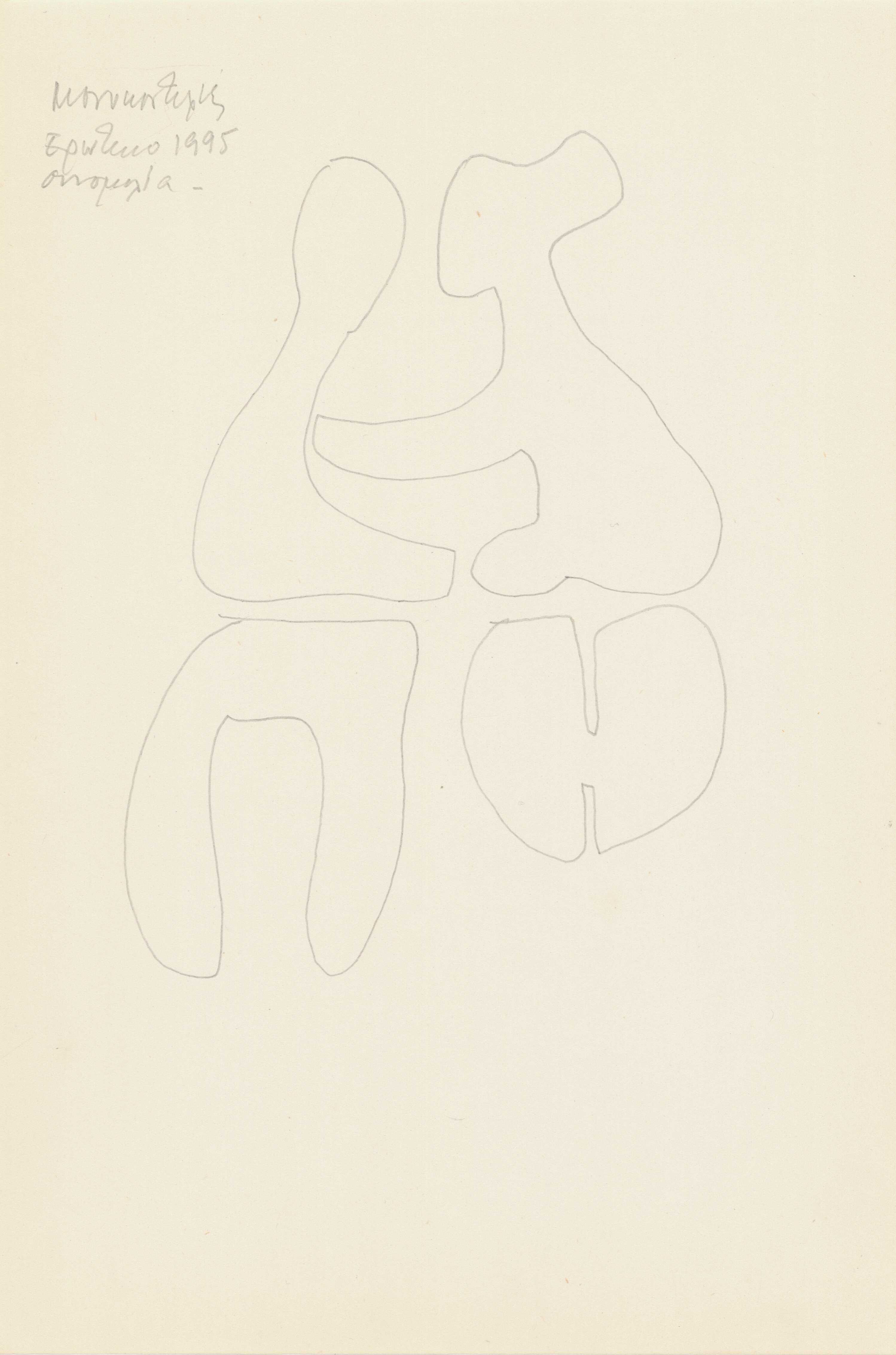 The early period of her work mainly consisted of representational sculptures focusing on the human form. Her move to Paris in the 1960s and her encounters with significant artists such as H. Arp, A. Giacometti, and O. Zadkine were transformative and shaped her artistic oeuvre. From her early anthropocentric compositions in the 1950s, she progressed to create abstract sculptures in wrought iron characterized by frontality, strict immobility, speed, sharp endings, and a play of lines that included void form and vertical surfaces. Through the rotations, folds, curves, movements, and tensions of pliable metal elements in architectural proposals, she arrived at the deeply worked simplicity of sculptural form and the purity of geometric marble surfaces, combining circles, semicircles, squares, and rectangles. In addition to her sculptural work, Mylona created a plethora of works on paper, engaged in painting, and drew the sets and costumes for the Greek Dance Theater of Rallou Manou.
