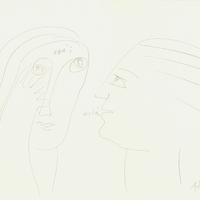 en Σύνθεση με δύο πορτραίτα, τα οποία απεικονίζονται προφίλ, το ένα απέναντι στο άλλο να συνομιλούν.
