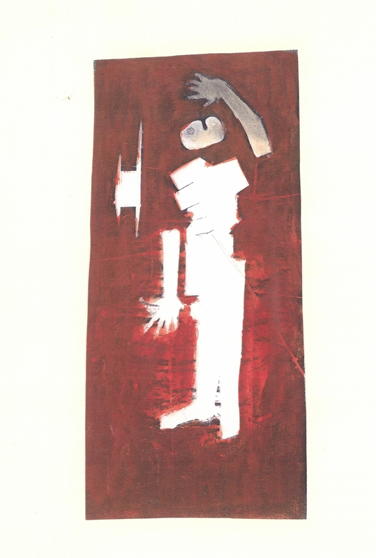 en The theme of "Crucifixion" is frequent and recurring in Alex Mylona's work. A first draft was made in 1968, as a prototype for a sculpture, during the years of the dictatorship, and served as a reference to Picasso's Guernica, as a sad reminder of the incessant misfortunes of mankind. Mylona revisits the theme thirty years later, creating a posture, the ancient gesture of supplication and protest of man before God.