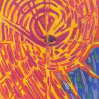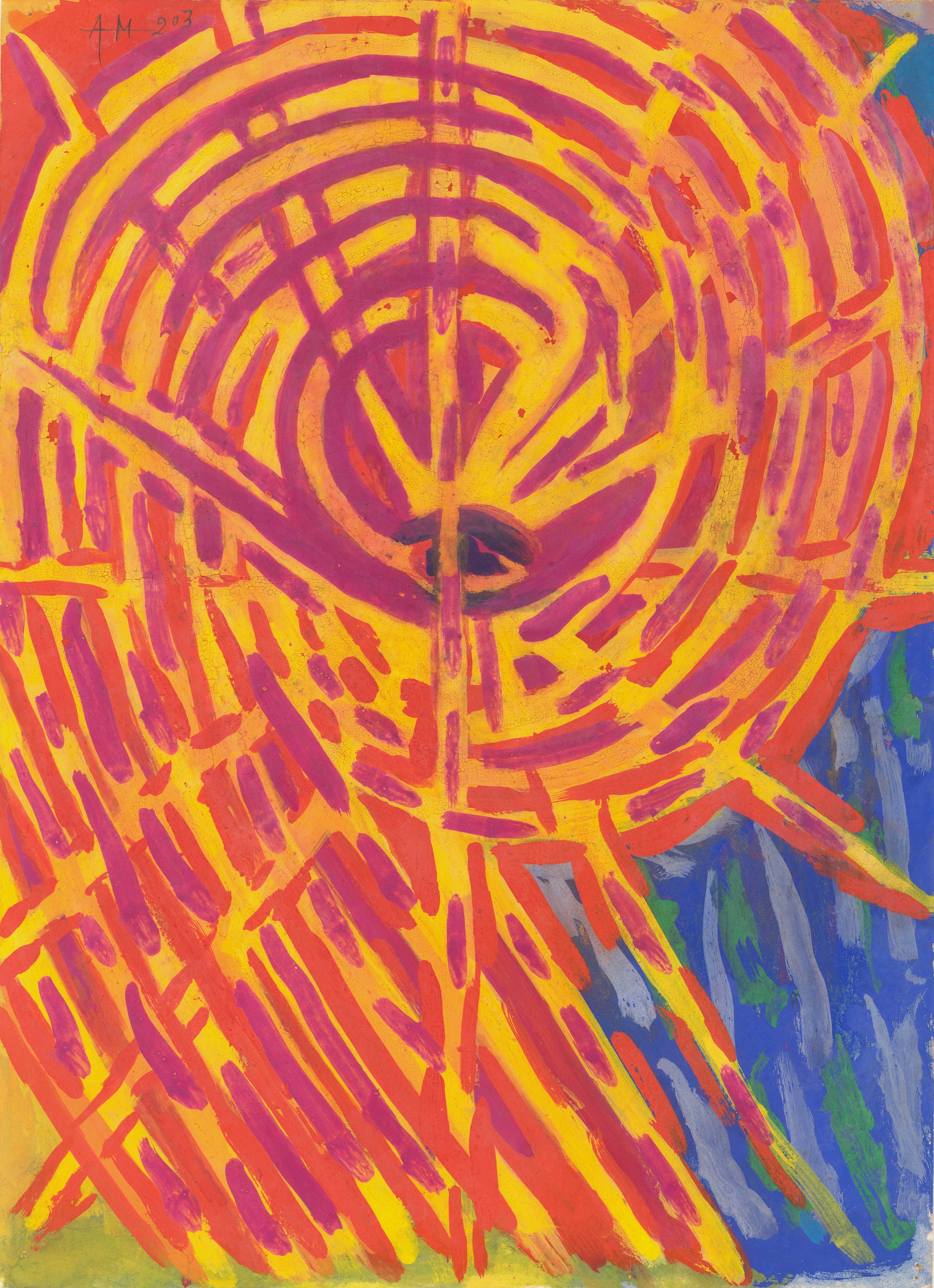 en Composition defined by spiral, helical forms. The presence of intense warm colors emphasizes the dominance and "warmth" of the celestial body, the sun.