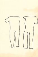 Η Άλεξ Μυλωνά αποτυπώνει στο χαρτί δύο μελέτες ζευγαριού, θέμα που είναι προσφιλές για την καλλιτέχνιδα. Η απεικόνιση ζευγαριών (π.χ. Αδάμ και Εύα) αποτελεί αγαπημένο της μοτίβο, καθώς της δίνει την ευκαιρία να απεικονίσει το άγγιγμα, την ένωση, τον εναγκαλισμό. Η αριστερή μελέτη που απεικονίζει τον σφιχτό εναγκαλισμό των δύο μορφών με τη μετωπικότητα των δύο σωμάτων μαρτυρά τις επιρροές που έχει η καλλιτέχνιδα από το «Φιλί» του Brancusi, ενώ στη δεξιά περίπτωση οι μορφές παρατίθενται ενωμένες η μία πλάι στην άλλη.