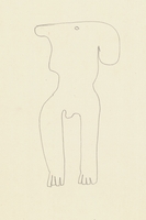 Σχέδιο της Άλεξ Μυλωνά, το οποίο προοριζόταν για τη δημιουργία παντατίφ. Η σύνθεση, στην οποία απεικονίζεται μόνο το περίγραμμα μιας μορφής χωρίς άλλες λεπτομέρειες, μαρτυρά την αγάπη της για τις εφαρμοσμένες τέχνες, καθώς και το ενδιαφέρον της για τη σύνθεση των τεχνών, θέλοντας να φιλοτεχνήσει χρηστικά και διακοσμητικά αντικείμενα μέσα από το πρίσμα των εικαστικών τεχνών.