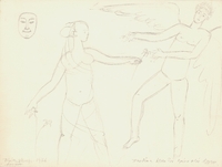 Σχέδιο της Άλεξ Μυλωνά, το οποίο προοριζόταν για τη δημιουργία παντατίφ. Η σύνθεση, στην οποία απεικονίζονται μόνο τα περιγράμματα δυο μορφών, μιας γυναικείας και μιας ανδρικής χωρίς άλλες λεπτομέρειες, μαρτυρά την αγάπη της για τις εφαρμοσμένες τέχνες, καθώς και το ενδιαφέρον της για τη σύνθεση των τεχνών, θέλοντας να φιλοτεχνήσει χρηστικά και διακοσμητικά αντικείμενα μέσα από το πρίσμα των εικαστικών τεχνών.