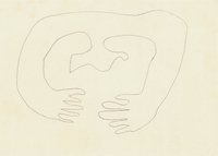 Σχέδιο της Άλεξ Μυλωνά, το οποίο προοριζόταν για τη δημιουργία παντατίφ. Η σύνθεση, στην οποία απεικονίζονται μόνο το περίγραμμα δύο χεριών χωρίς άλλες λεπτομέρειες, μαρτυρά την αγάπη της για τις εφαρμοσμένες τέχνες, καθώς και το ενδιαφέρον της για τη σύνθεση των τεχνών, θέλοντας να φιλοτεχνήσει χρηστικά και διακοσμητικά αντικείμενα μέσα από το πρίσμα των εικαστικών τεχνών.