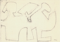 Προσχέδιο της Άλεξ Μυλωνά, μια διαφορετική εκδοχή για το έργο «Τα Τείχη», το οποίο εκτελέστηκε σε μάρμαρο το 1984. Ενώ το έργο που πραγματοποιήθηκε αποτελείται από μια αλληλουχία μαρμάρινων πλακών σε ένα βάθος έξι διαδοχικών επιπέδων, εδώ η καλλιτέχνιδα δίνει μια πιο αναπαραστατική εκδοχή του, όπου μια σειρά από ορθογώνιους όγκους ανασυντίθεται σε μια μεγάλη ορθογώνια κατασκευή. Το σχέδιο παραπέμπει στην αρχαιότητα και στην τοιχοποιία των μυκηναϊκών οχυρώσεων.