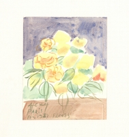 Μελέτη νεκρής φύσης με φρουτιέρα και φρούτα. Η καλλιτέχνιδα αποτυπώνει μια νεκρή φύση με φρούτα, χρησιμοποιώντας χωρίς φειδώ το χρώμα στη σύνθεσή της, ενώ το φόντο είναι απροσδιόριστο.