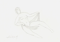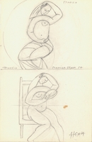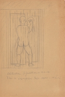 Μελέτη ζευγαριού. Σχέδιο με μολύβι, στο οποίο δεσπόζει στο κέντρο της σύνθεσης μια ανδρική μορφή, η οποία φέρεται να αγκαλιάζει μια γυναικεία που βρίσκεται από πίσω της. Η σύνθεση είναι λιτή με την παρουσία μόνο των δύο μορφών, χωρίς να ορίζεται ξεκαθαρα ο περιβάλλων χώρος.