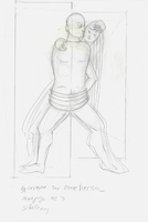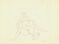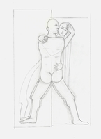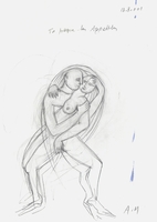 Μελέτη ζευγαριού. Σχέδιο με μολύβι, στο οποίο δεσπόζει στο κέντρο της σύνθεσης μια ανδρική μορφή, η οποία φέρεται να αγκαλιάζει μια γυναικεία που βρίσκεται από πίσω της.