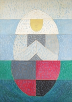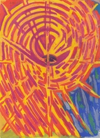Σύνθεση, η οποία ορίζεται από σπειροειδείς, ελικοειδείς φόρμες. Η παρουσία των έντονων θερμών χρωμάτων έρχεται να υπερτονίσει την κυριάρχια και τη "ζεστασιά" του ουράνιου σώματος, του ήλιου.