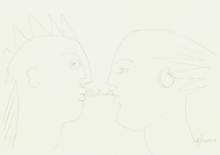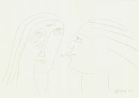 Σύνθεση με δύο πορτραίτα, τα οποία απεικονίζονται προφίλ, το ένα απέναντι στο άλλο να συνομιλούν.