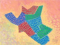 Αφηρημένη σύνθεση, στην οποία κυριαρχούν ο γεωμετρικός σχεδιασμός και η χρωματικός πλουραλισμός.