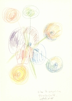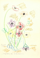 Σχέδιο με χρωματιστά μολύβια, το οποίο αποδίδει αφαιρετικά μία συστοιχία λουλουδιών.