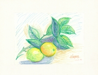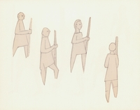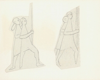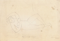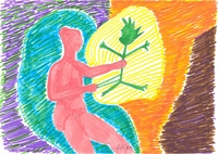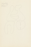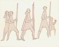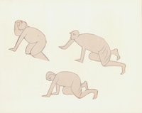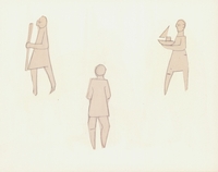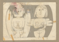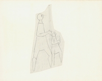 Μελέτη σύνθεσης, όπου η καλλιτέχνιδα αποτυπώνει με μια λιτή απόδοση μια συμβολική σκηνή, γεμάτη τρυφερότητα.