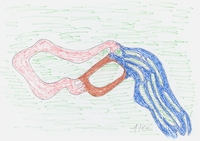 Αφηρημένη σύνθεση, η οποία βασίζεται στην αντιπαράθεση ευθείων και καμπύλων σχημάτων, μια προσπάθεια σύλληψης και διαπραγμάτευσης του ζωγραφικού χώρου μέσω μιας μελέτης των επιπέδων, των γραμμών και των χρωμάτων που θυμίζει ζωγραφικές και γλυπτικές μελέτες στα τέλη του '80 και στις αρχές του '90, όπου η Μυλωνά διαπραγματεύεται το παιχνίδι της αντιστροφής των σχημάτων και της αντίθεσης θετικού-αρνητικού. Εδώ, όπως σημειώνει η ίδια η καλλιτέχνιδα, πρόκειται για μια συνομιλία μεταξύ ενός ζευγαριού, για μια "ερωτική" συνομιλία.