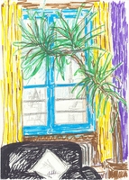 Σύνθεση εσωτερικού χώρου στο πίσω μέρος της οποίας δεσπόζει η απεικόνιση παραθύρου, που δίνει μια αφαιρετική απόδοση της εξωτερικής θέας. Στον εσωτερικό χώρο διακρίνονται ευκρινώς αρκετές λεπτομέρειες, ενώ δεσπόζει ένας χρωματικός πλουραλισμός.