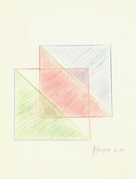 Μελέτη χρωμάτων και γεωμετρικών σχημάτων, αποκλειστικά τετραγώνων, τα οποία αποδίδει με διαφορετικές χρωματικές παραλλαγές σε κάθε πλευρά, πειραματιζόμενη ειδικά με το αποτέλεσμα που προκύπτει στις πλευρές που εφάπτονται.