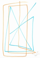 Πειραματισμοί με γεωμετρικά σχήματα και χρώματα. Η καλλιτέχνιδα δημιουργεί συνθέσεις, τις οποίες εσωκλείει σε ορθογώνια και τετράγωνα.