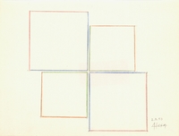Χρωματικοί πειραματισμοί με εφαπτόμενα τετράγωνα που το ένα καλύπτει το άλλο, δημιουργώντας ιδιαίτερες χρωματικές σχέσεις και συνθέσεις.