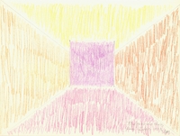 Σύνθεση γεωμετρικών σχημάτων, με έμφαση στο κέντρο της ζωγραφικής επιφάνειας, όπου φαίνονται να καταλήγουν σε ένα τετράγωνο.