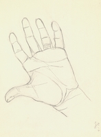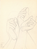 Σπουδή για την απεικόνιση χεριών. Η καλλιτέχνιδα πραγματοποιεί μια σειρά μελετών για χέρια σε διάφορες παραλλαγές μοτίβου, επιδιώκοντας να μελετήσει και να αποδώσει την κίνηση και την εκφραστικότητα των χεριών, ένα από τα πιο δύσκολα στοιχεία της ζωγραφικής.