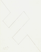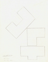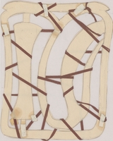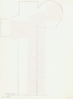 Μελέτη σταυρού με τέμπερα σε περικοπτόμενο χαρτί. Η καλλιτέχνιδα συνθέτει ένα κολάζ με κομμένα τμήματα χαρτιού, τα οποία χαρακτηρίζει η χρωματική λιτότητα, δημιουργώντας μια αφηρημένη σύνθεση.