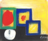 Αφηρημένη σύνθεση της καλλιτέχνιδας, στην οποία πραγματοποιεί χρωματικούς πειραματισμούς