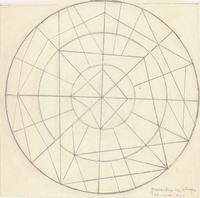 Μελέτη της καλλιτέχνιδας για την απόδοση του ήλιου. Όπως η ίδια σημειώνει κάτω από το έργο στη δεξιά μεριά του φύλλου: "Προσπάθεια για να φτιάξω τον ήλιο". Η σύνθεση απαρτίζεται από έναν μεγάλο εξωτερικό κύκλο, ο οποίος διχοτομείται και διαιρείται σε πολλαπλές μικρότερες επιφάνειες, από τις δεκάδες διαγώνιες, κάθετες και οριζόντιες γραμμές που τον ορίζουν, ενώ στο κέντρο του αναπτύσσονται μικρότεροι ομόκεντροι κύκλοι.